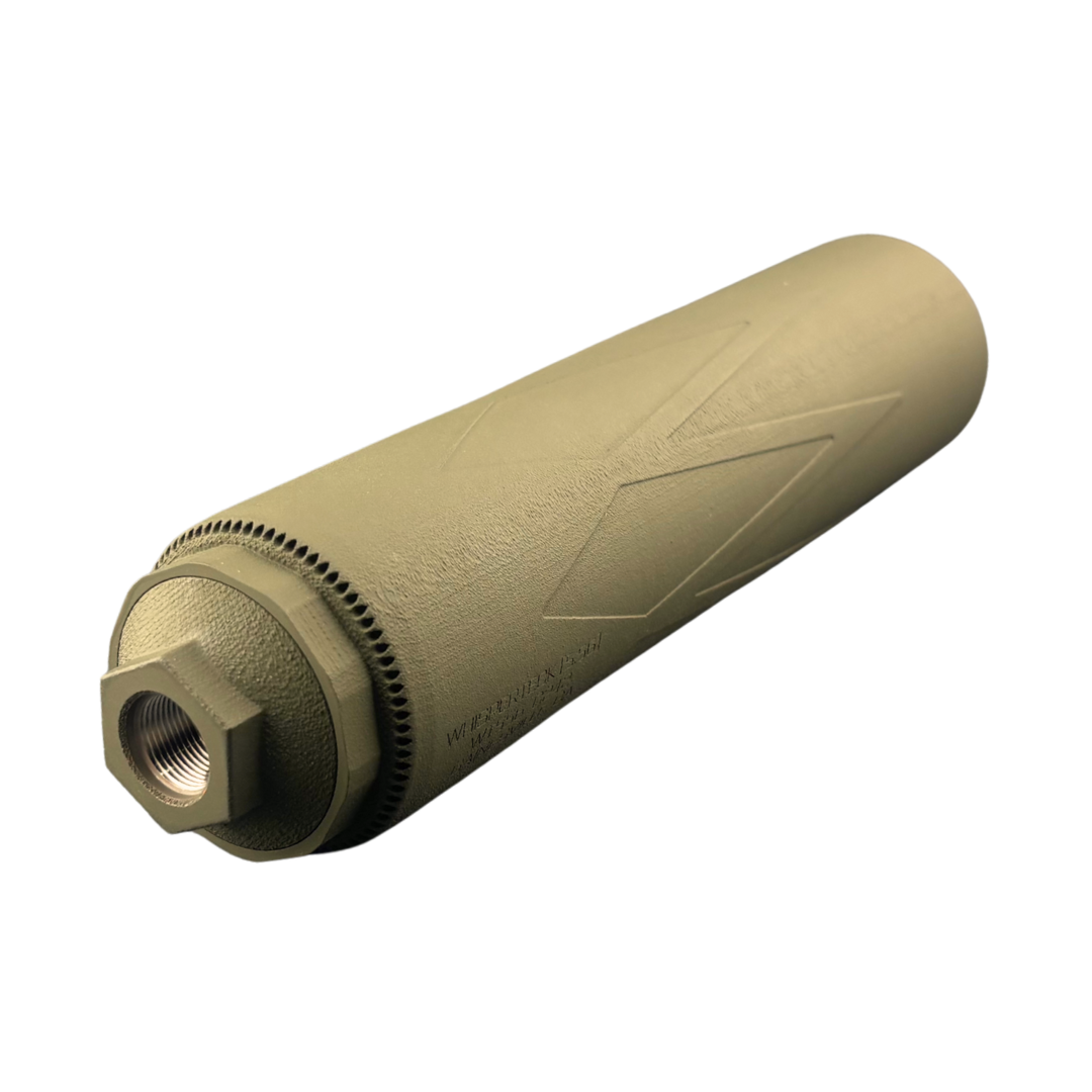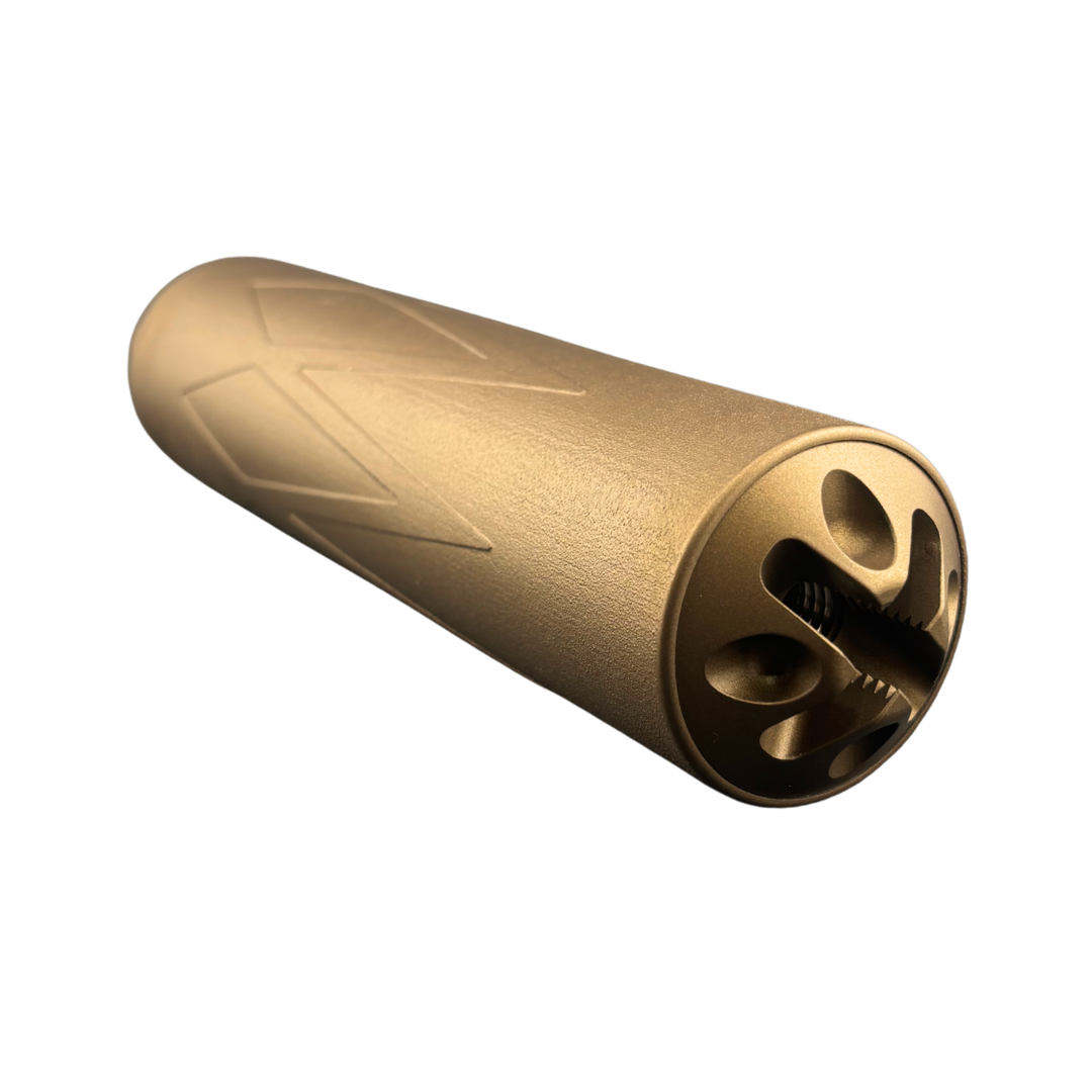 Built from Ti64V ELI Grade 23 titanium and finished in Cerakote, the M80 556 offers long-term strength, excellent heat resistance, and the internal volume needed for efficient gas control. Expect minor initial sparking during first use—normal for 3D-printed titanium suppressors. The result is a rugged, clean-running 5.56 suppressor designed to deliver stable performance in the harshest conditions.